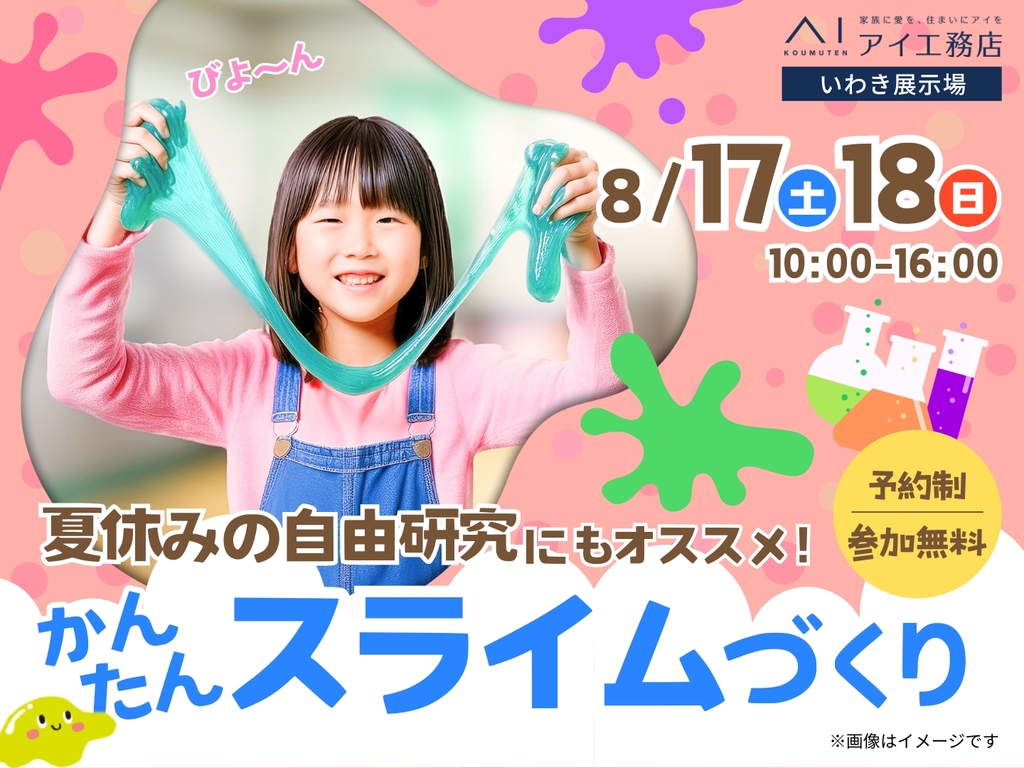 | タイトル | いわき展示場 夏休みの自由研究にも!かんたんスライムづくり 予約ページ |