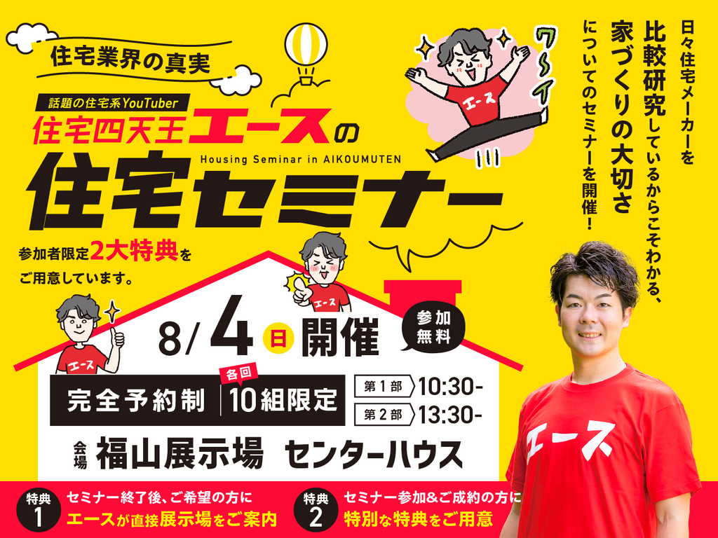 | タイトル | 福山展示場 住宅四天王エースの住宅セミナー |