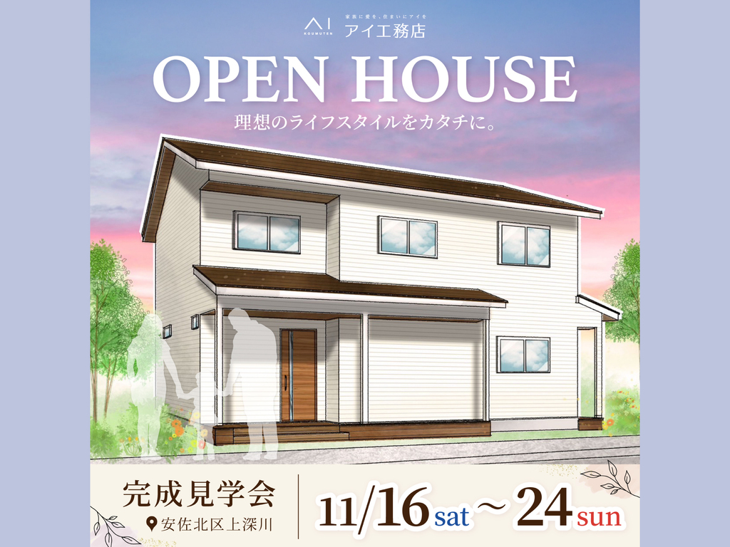 | タイトル | 完成見学会 「理想のライフスタイルをカタチにした、安心して暮らせる心地よい家」 |