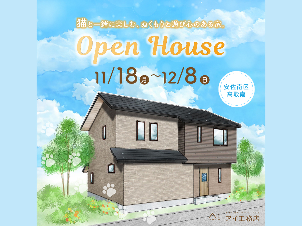 | タイトル | 完成見学会 「猫と一緒に楽しむ、ぬくもりと遊び心のある家」 |