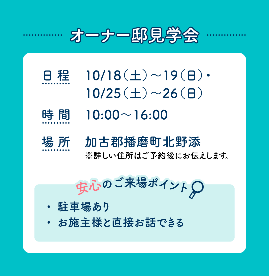 ※当日はアイパーク高砂(複合型住宅展示場)へお越しいただき、現地にご案内させていただきます。