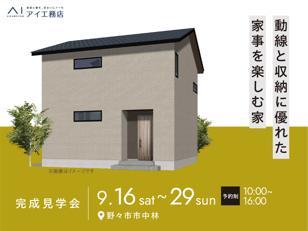 | タイトル | アイパーク金沢(複合型住宅展示場) 《野々市市中林》動線と収納に優れた 家事を楽しむ家 完成見学会 |