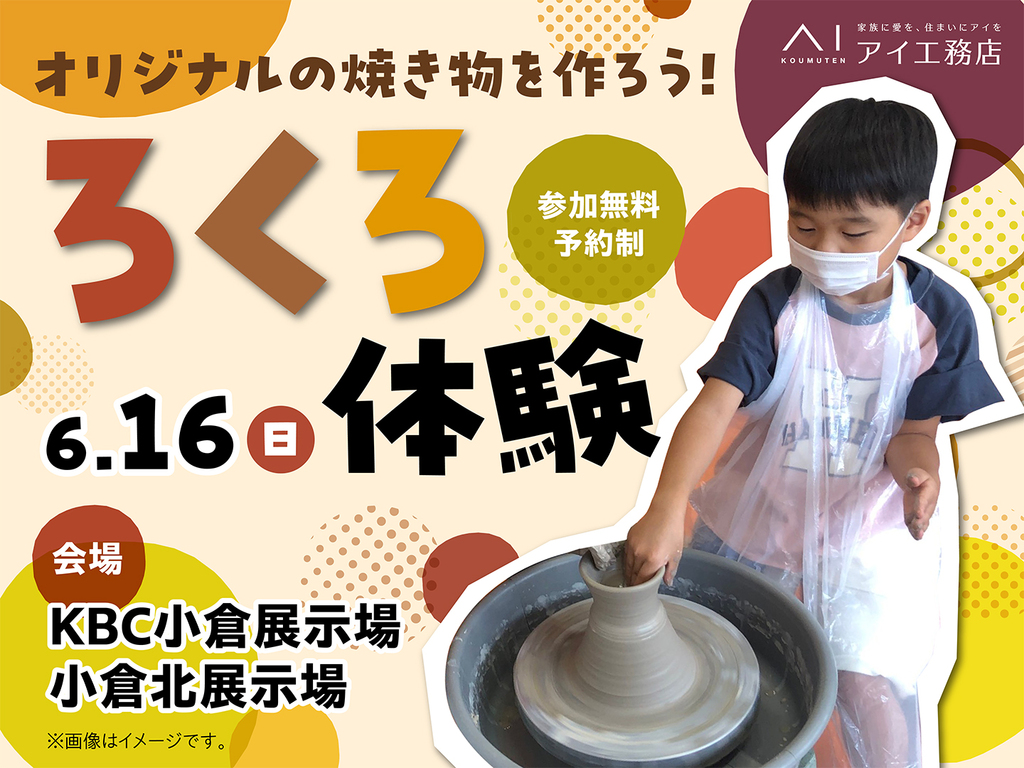 | タイトル | KBC小倉展示場 【満員御礼】ろくろを回してオリジナルの焼き物を作ろう! 予約ページ |