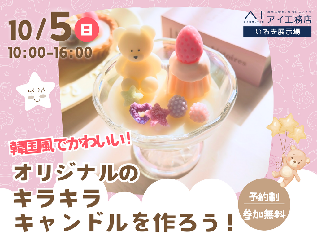 | タイトル | いわき展示場 オリジナルのキラキラキャンドルを作ろう♪ |