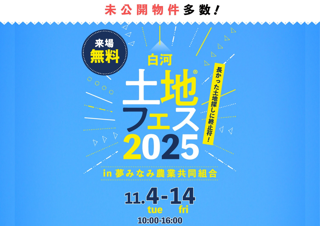| タイトル | 郡山北展示場 土地フェス®︎2025 会場:夢みなみ農業共同組合 白河ローンセンター |