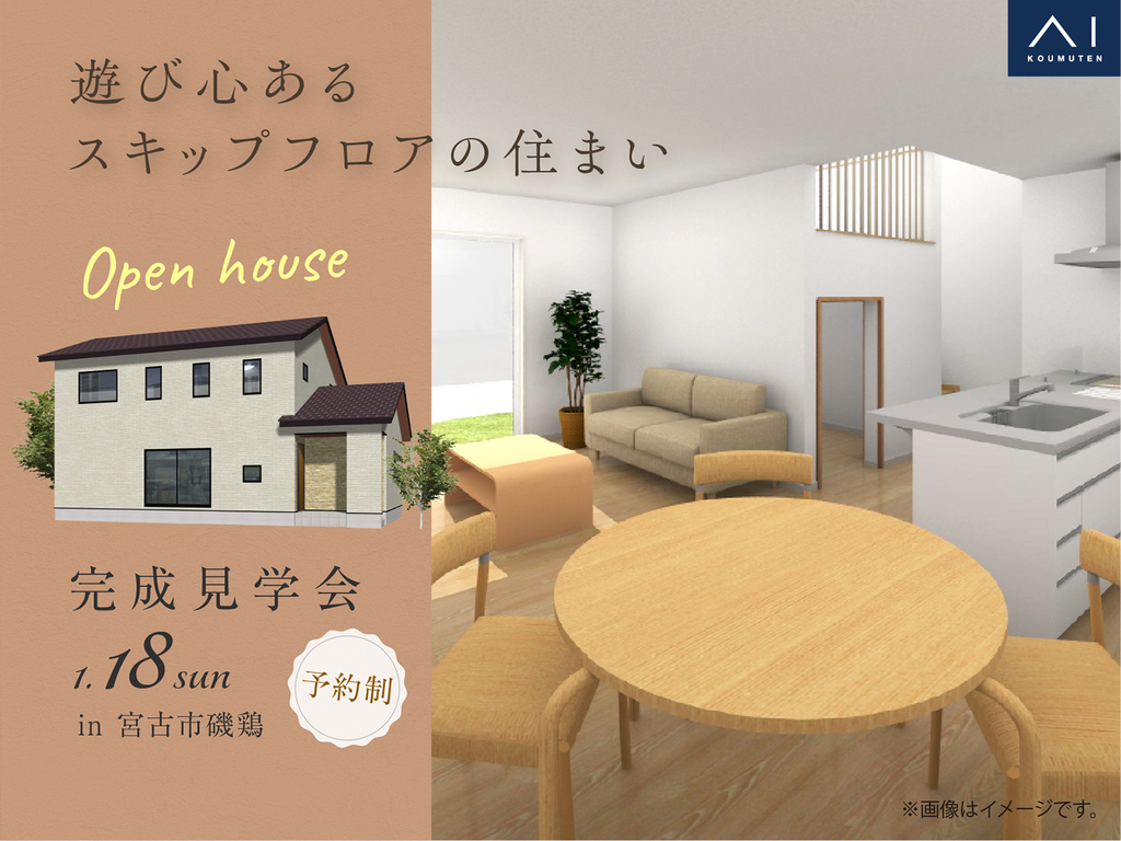 | タイトル | アイメッセ盛岡(複合型住宅展示場)《宮古市磯鶏》遊び心あるスキップフロアの住まい 完成見学会 |