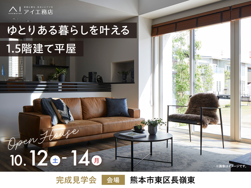 | タイトル | 御代志展示場 《熊本市東区長嶺東》ゆとりある暮らしを叶える1.5階建て平屋 完成見学会 |