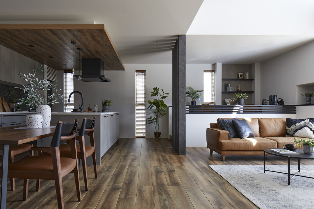 家族がリラックスできる雰囲気と、デザイン性の高さを兼ね備えたインテリアです。