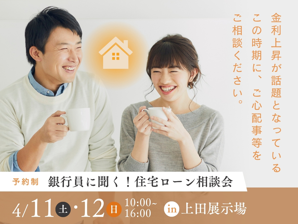 | タイトル | 上田展示場 銀行員に聞く!住宅ローン相談会 〜プロの試算で未来を見通す。 安心の資金計画〜 |
