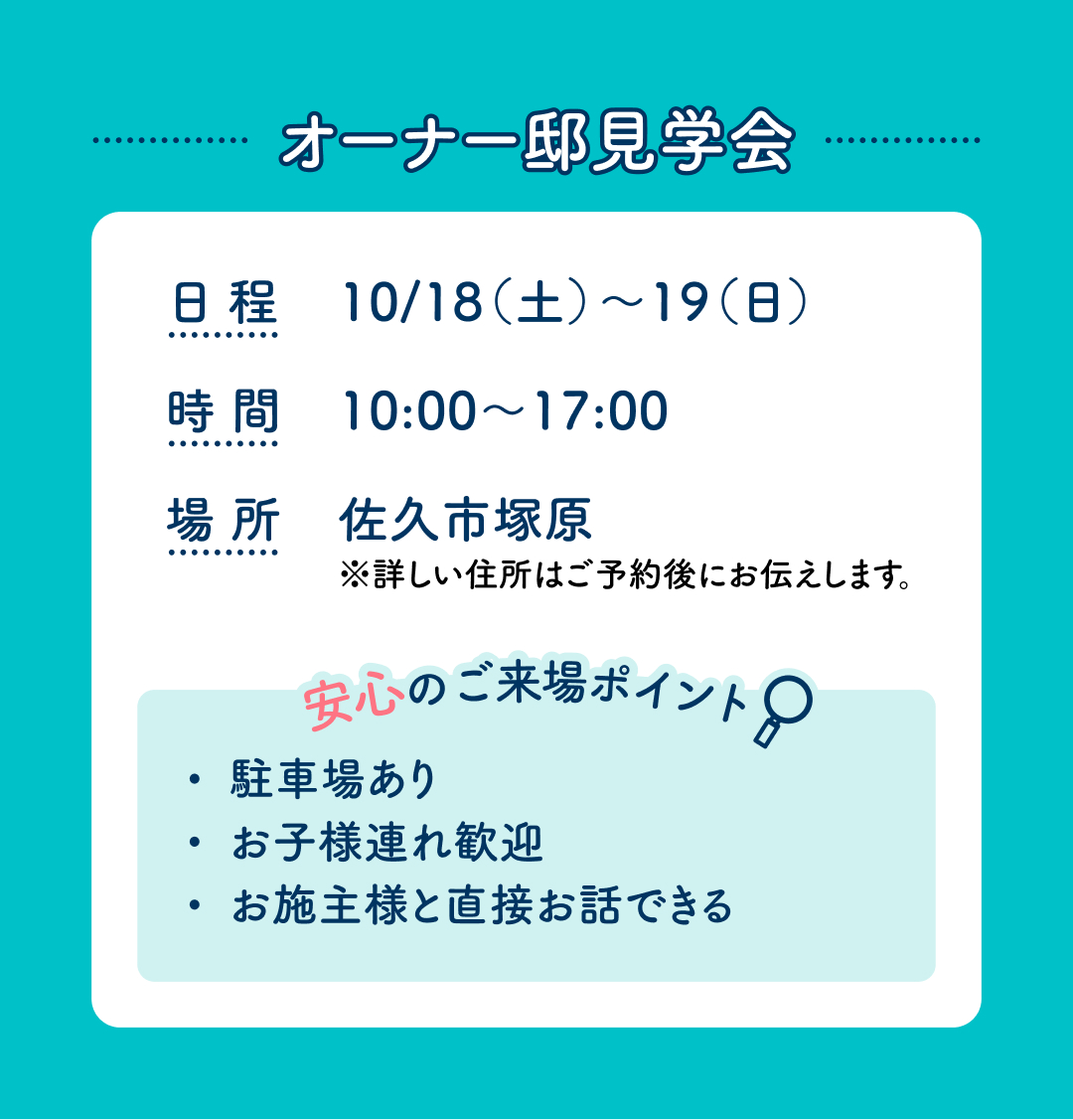 | タイトル | 佐久平展示場 広々としたタイルデッキのある家 オーナー様邸見学会 |