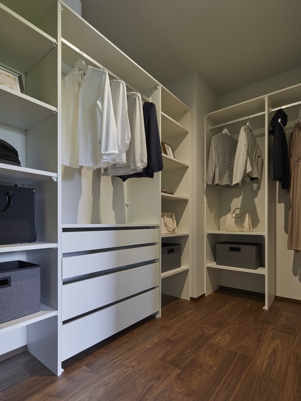 毎日の家事がぐっと時短に。家族みんなの衣類をまとめて管理できる、便利で効率的な間取りです。