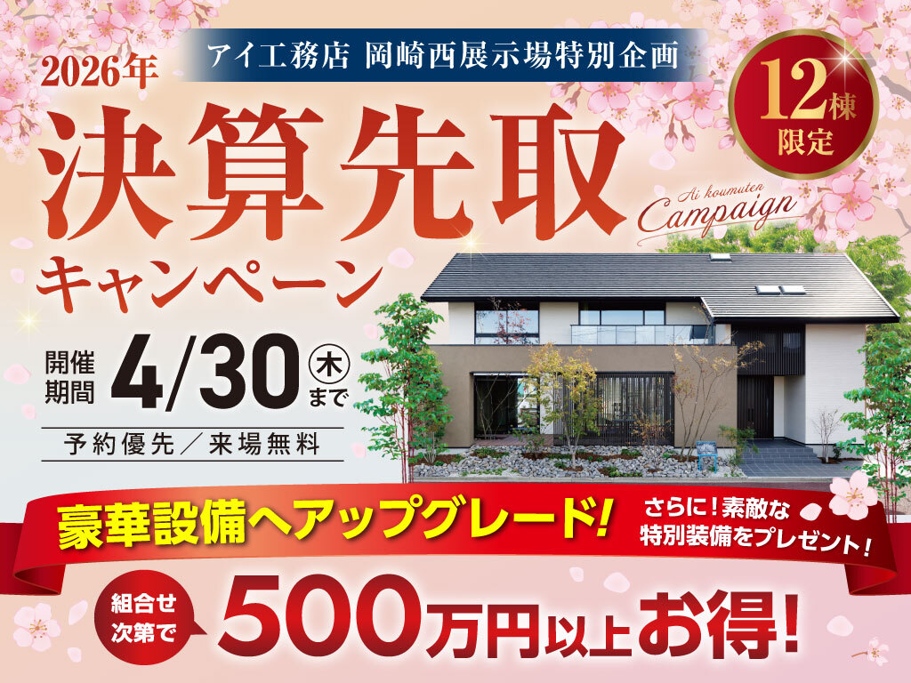 | タイトル | 岡崎西展示場 決算先取りキャンペーン |