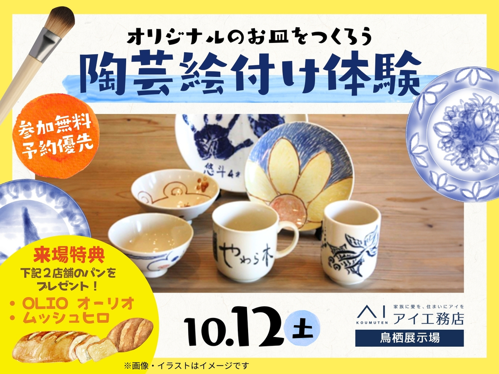 | タイトル | 鳥栖展示場 陶芸絵付け体験 オリジナルのお皿をつくろう 来場予約 |