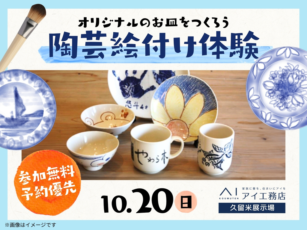 | タイトル | 久留米展示場 陶芸絵付け体験 オリジナルのお皿をつくろう 来場予約 |