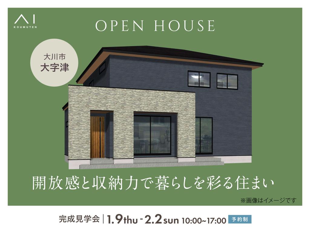 | タイトル | 久留米展示場 《大川市大字津》開放感と収納力で暮らしを彩る住まい 完成見学会 |