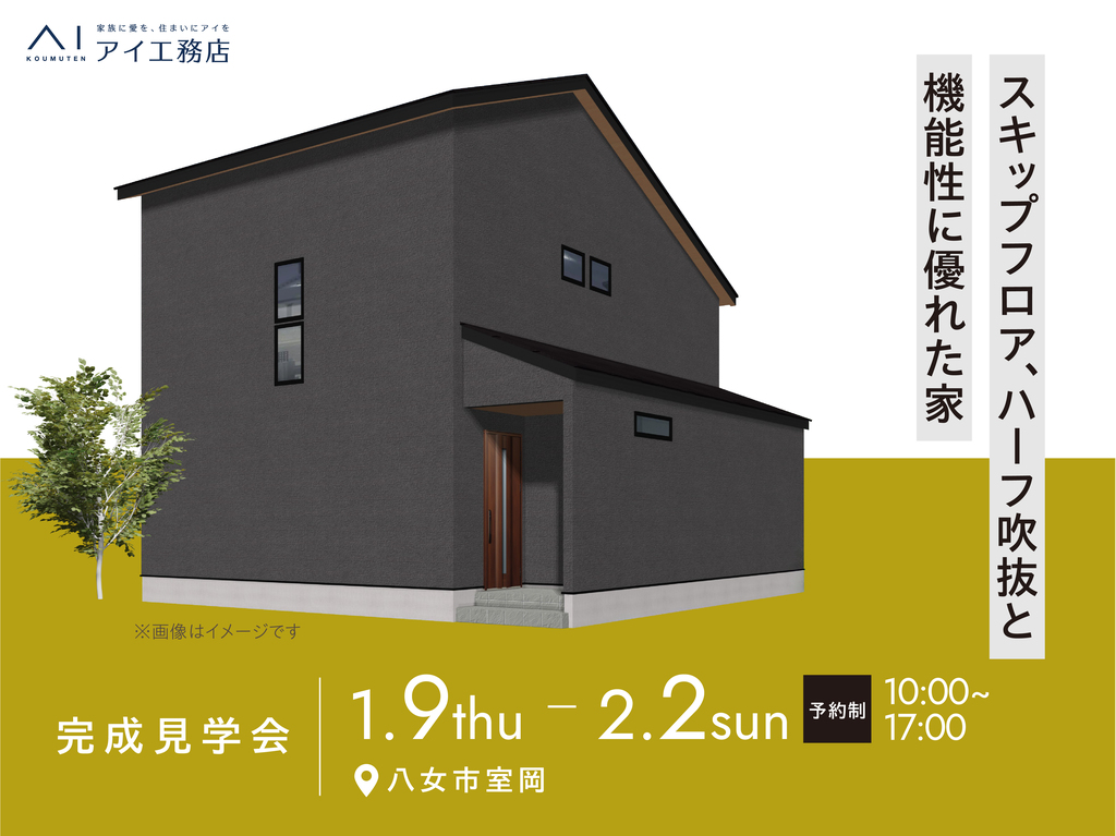 | タイトル | 久留米展示場 《八女市室岡》スキップフロア、ハーフ吹抜と機能性に優れた家 完成見学会 |