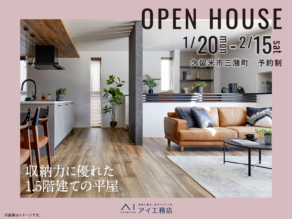 | タイトル | 久留米展示場 《久留米市三潴町》収納力に優れた1.5階建ての平屋 完成見学会 |