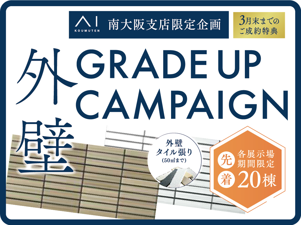 | タイトル | 中百舌鳥展示場 【GRADEUP CAMPAIGN】3つのご成約特典♪ |