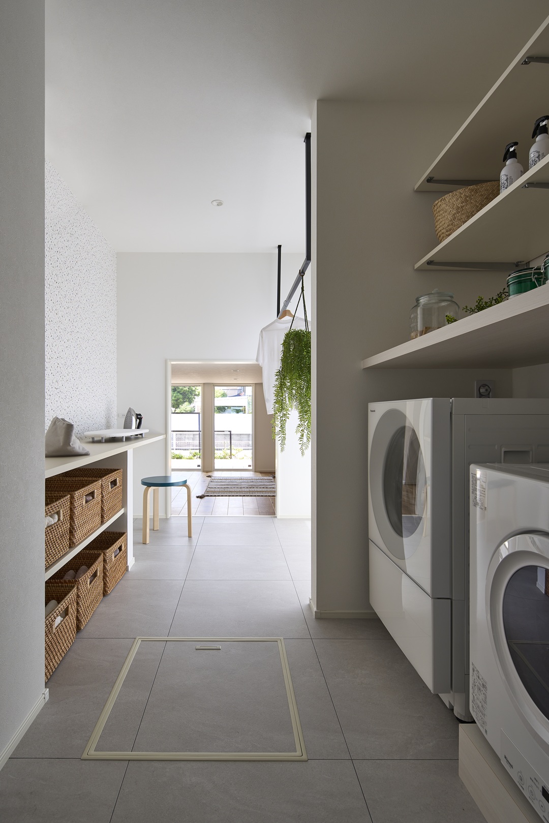 水回りをぎゅっとまとめ、移動距離を短くした家事動線を計画。毎日の家事がぐっと効率的になり、家族との時間をより多く楽しめます。