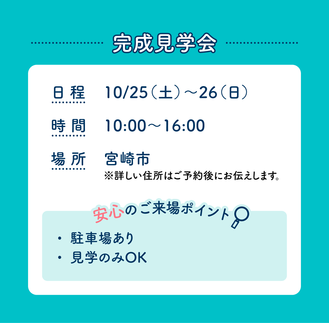 | タイトル | アイパーク宮崎(複合型住宅展示場) 広々LDKと高断熱の快適な家 完成見学会 |