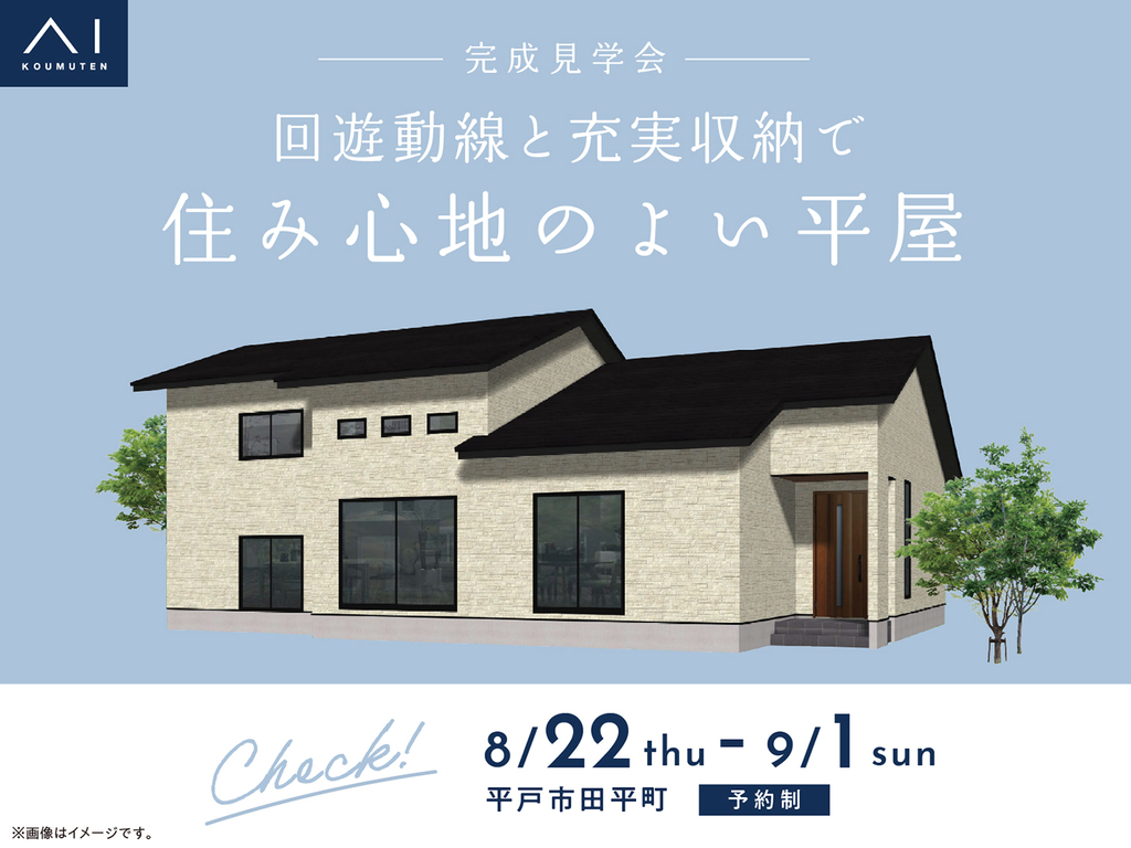 | タイトル | させぼ展示場 《平戸市田平町》回遊動線と充実収納で 住み心地のよい平屋 完成見学会 |