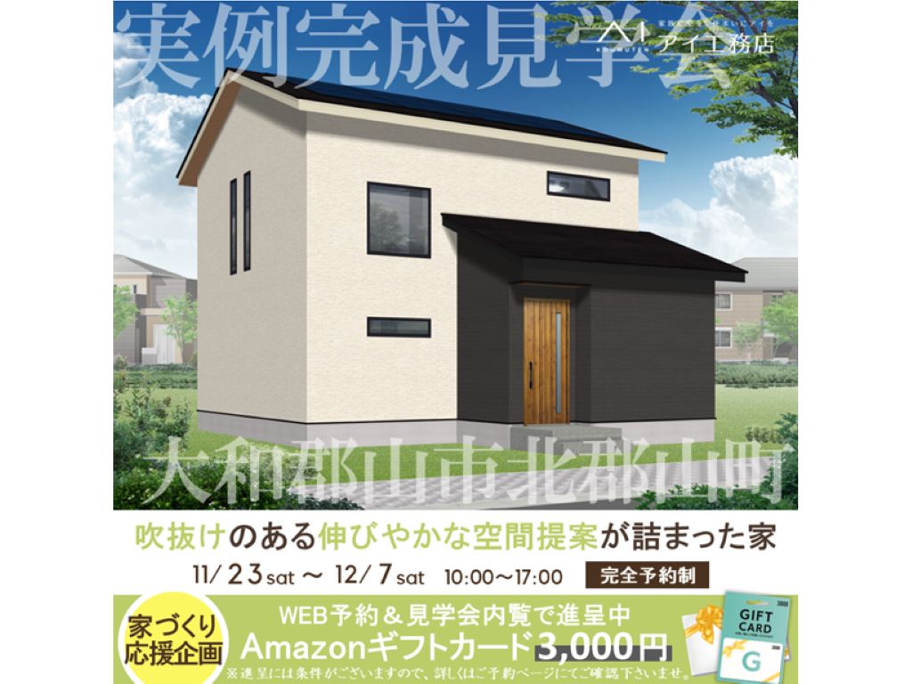 Amazonギフトカードの進呈につきましては、アイ工務店へのご来場が初めてのお客様に限らせて頂きますので、予めご了承下さいますようお願いを申し上げます。