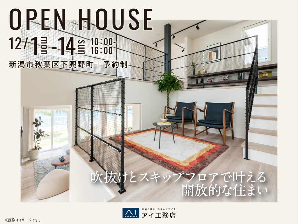 新潟桜木展示場 《新潟市秋葉区下興野町》吹抜けとスキップフロアで叶える 開放的な住まい 完成見学会