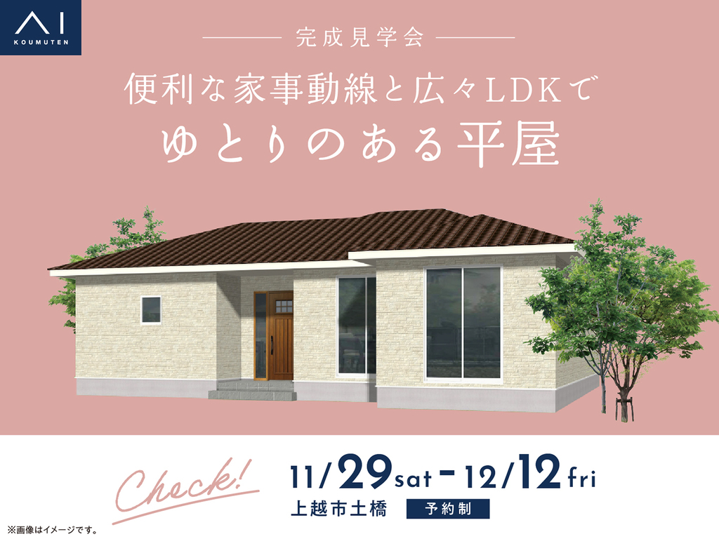 | タイトル | 長岡展示場 《上越市土橋》便利な家事動線と広々LDKで ゆとりのある平屋 完成見学会 |