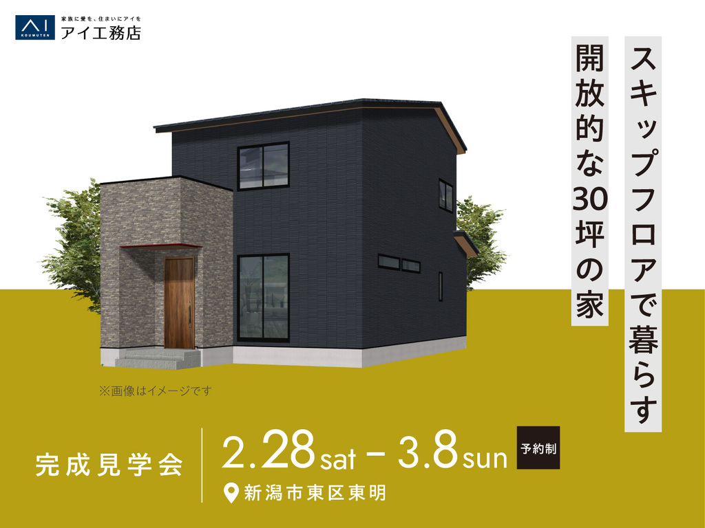 タイトル 新潟南展示場 《新潟市東区東明》スキップフロアで暮らす開放的な30坪の家 完成見学会