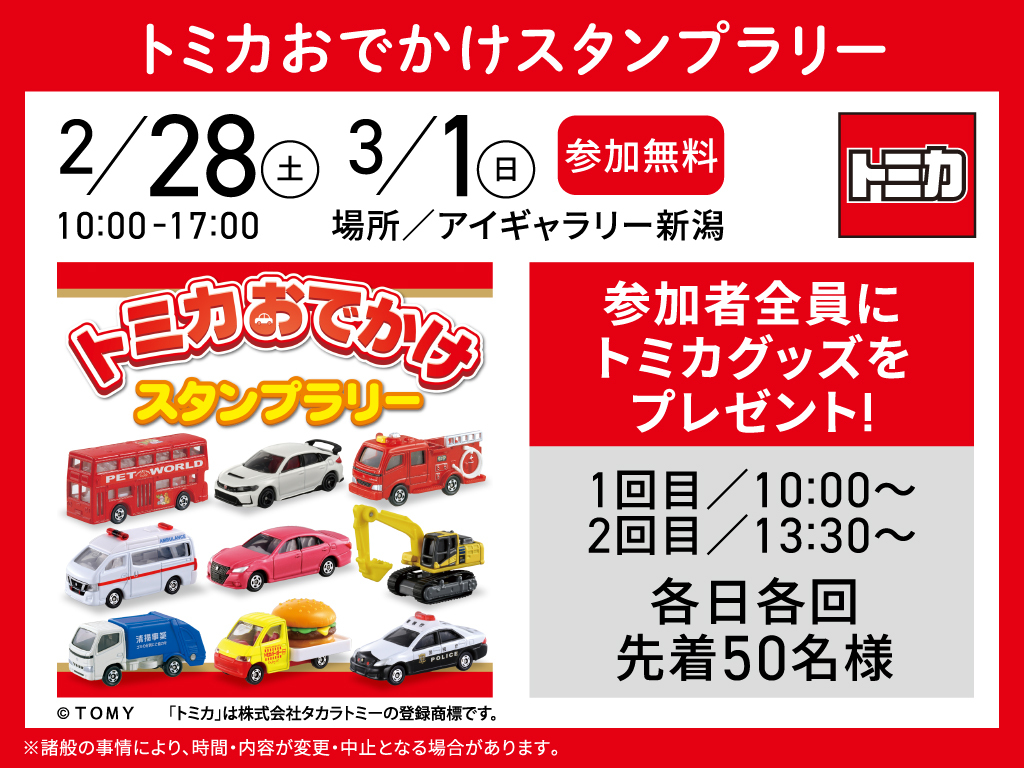| タイトル | アイギャラリー新潟(ショールーム併設型住宅展示場)トミカおでかけスタンプラリー【参加無料】 |