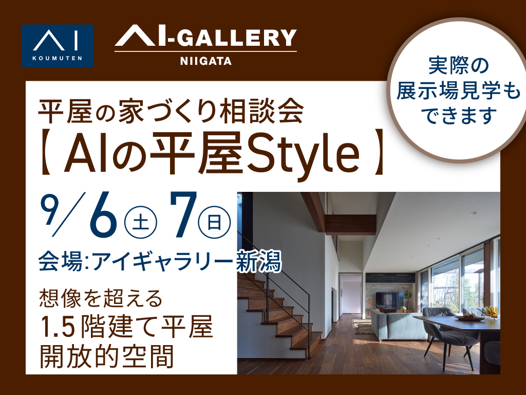 タイトル | アイギャラリー新潟(ショールーム併設型住宅展示場)平屋の家づくり相談会 |