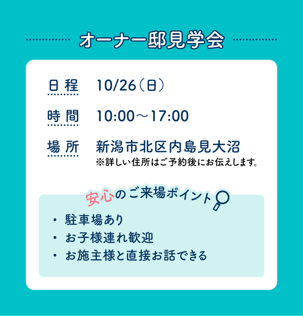 | タイトル | 新潟西展示場 ハーフ収納のある5LDKの家 オーナー様邸見学会 |