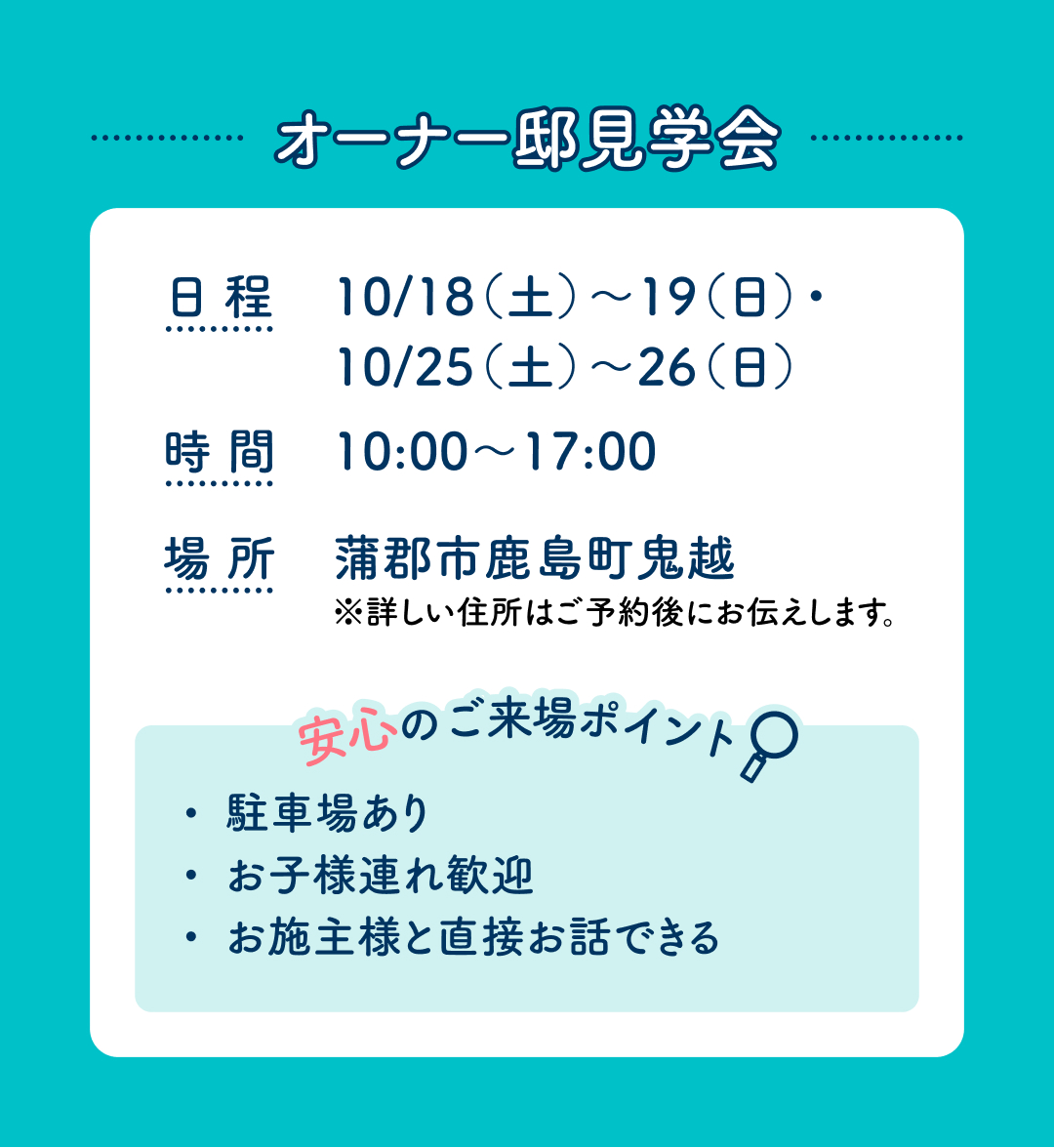 アイ工務店の『住まいの勉強会』は、オーナー邸・完成見学会・モデルハウスを見学できる年2回の期間限定特別イベントです!