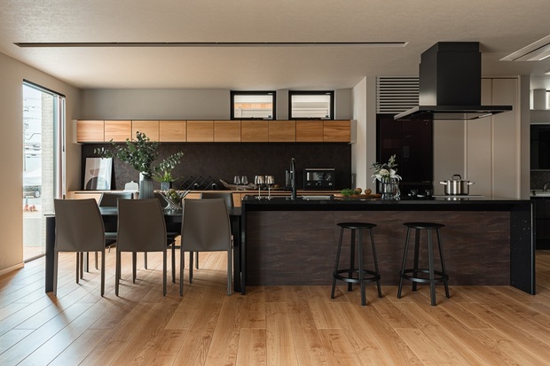 上質なブラックコーディネートで、空間を引き締めるデザイン性。