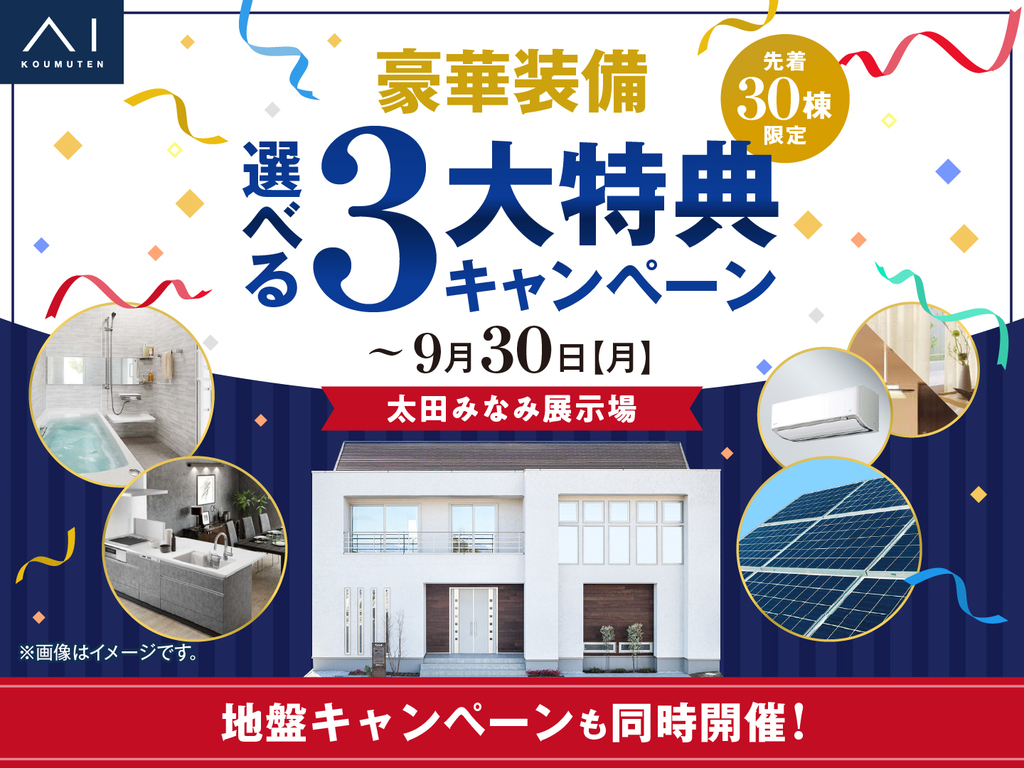 | タイトル | 太田みなみ展示場 豪華装備 選べる3大特典キャンペーン |