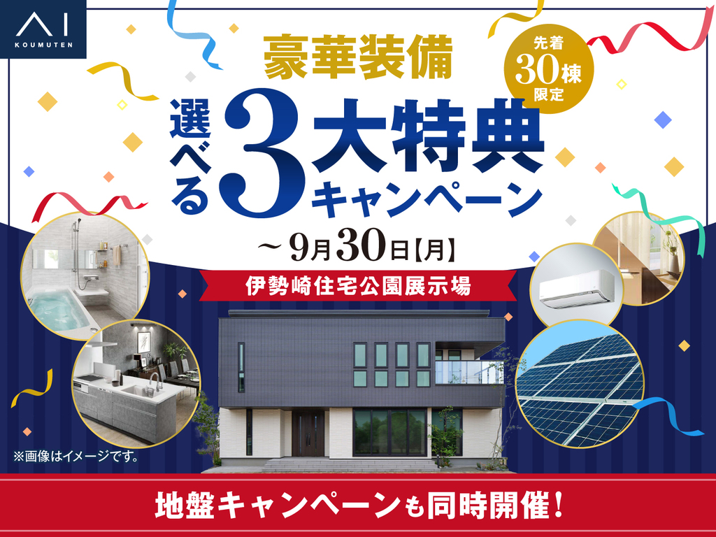 | タイトル | 伊勢崎住宅公園展示場 豪華装備 選べる3大特典キャンペーン |