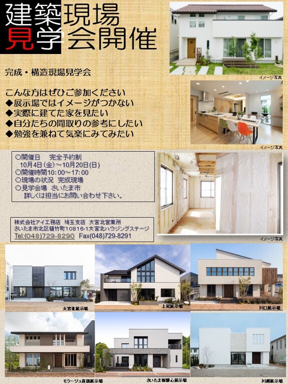| 開催場所 | 埼玉県さいたま市北区植竹町1-816-1総合住宅展示場 大宮北ハウジングステージ |