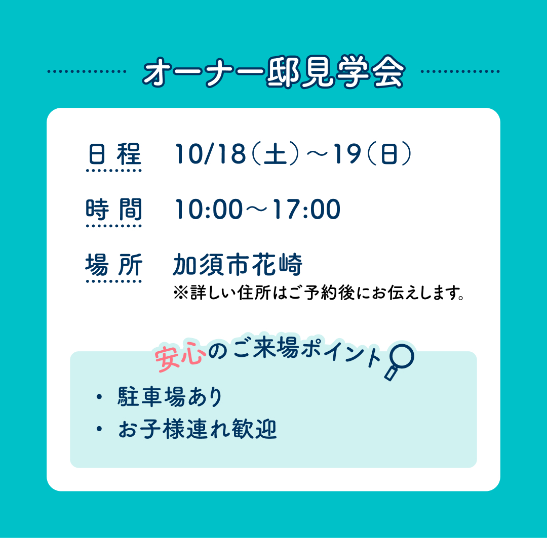 アイ工務店の『住まいの勉強会』は、オーナー邸・完成見学会・モデルハウスを見学できる年2回の期間限定特別イベントです!