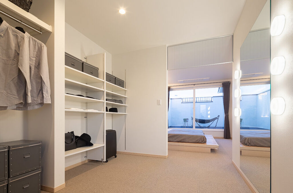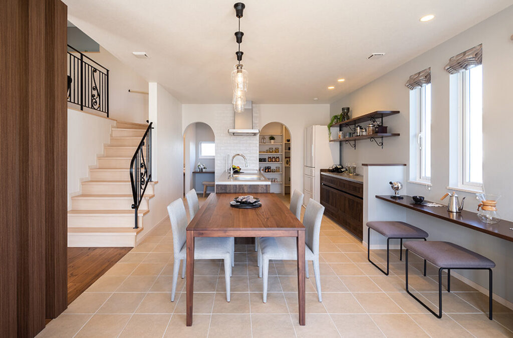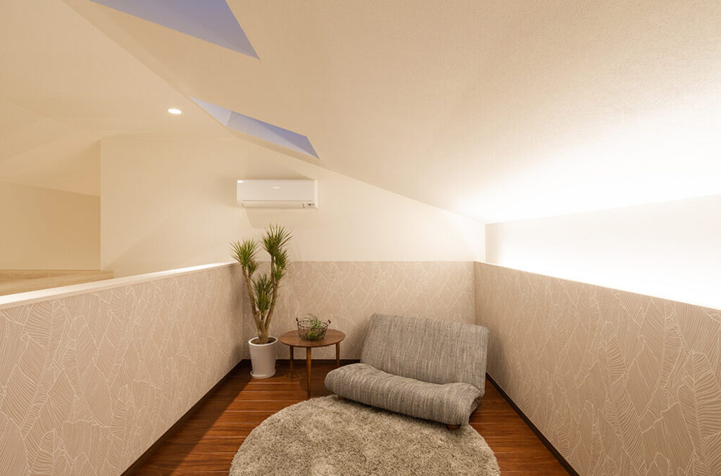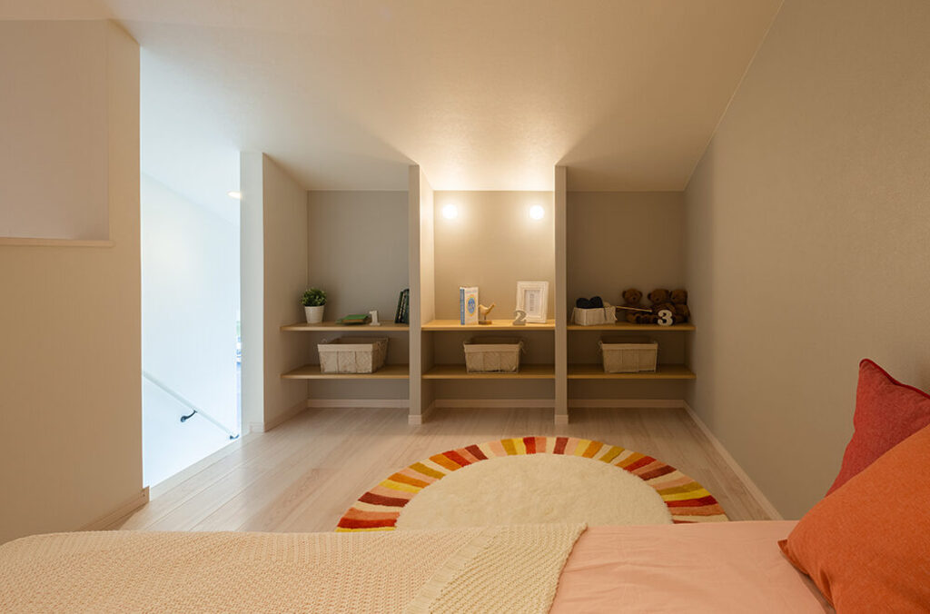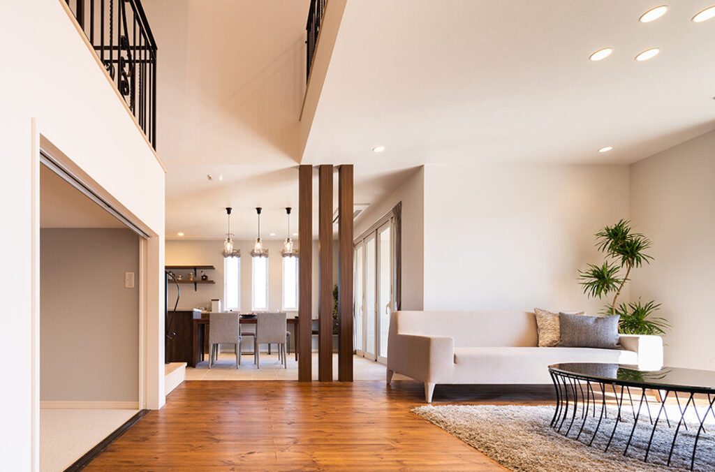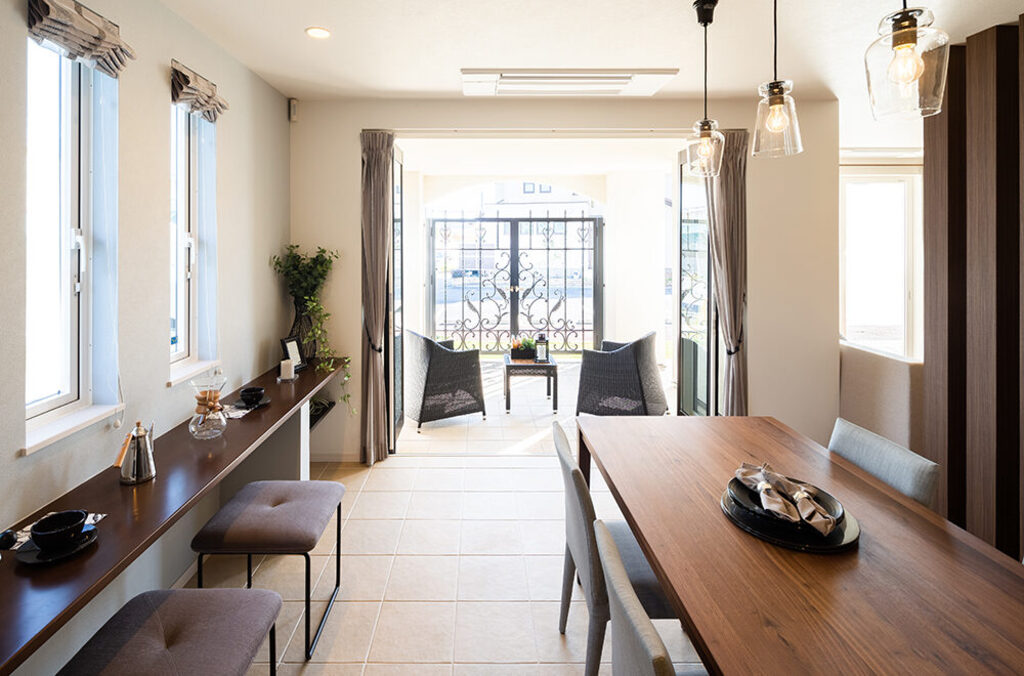 白い塗り壁と木目の組み合わせが優しさを漂わせる「佐野CRT展示場」は、テラスに続くアイアンの門扉も印象的。小屋裏までの吹抜を配したリビングは縦にも横にも開放感があふれ、家族のつながりを演出しています。リビング横のハーフ収納、その上部、1.5階のスキップフロア、小屋裏を活用したリラクゼーションスペースや子ども部屋から続く秘密基地をはじめ、アイデア空間も多彩。家族用とゲスト用に分けた玄関、キッチン近くのパントリーやママコーナー、壁を立ち上げ、周囲の目線を気にすることなく過ごせるバルコニーなど、採り入れたくなる提案がいっぱいです。