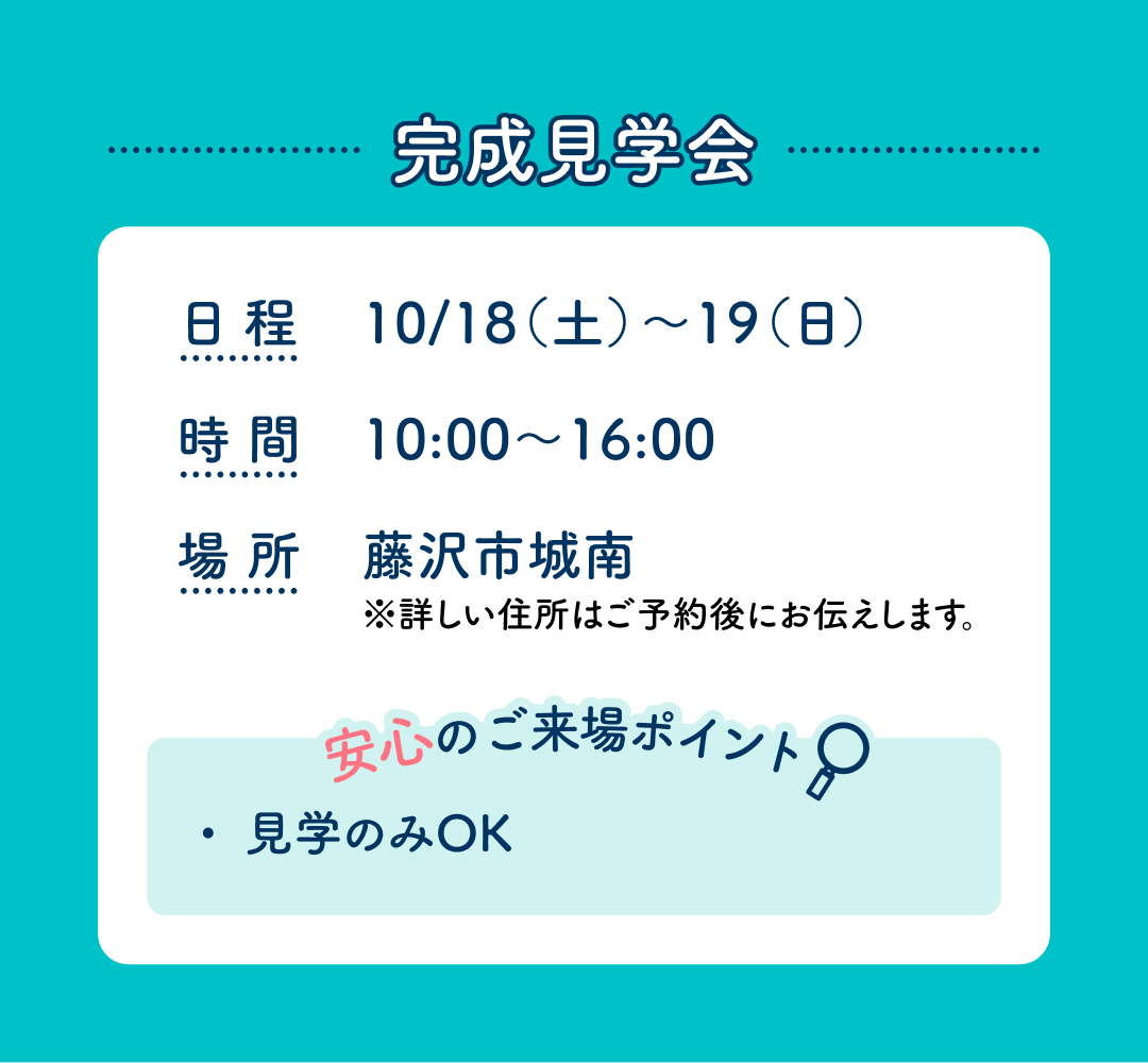 ※当日は平塚展示場へお越しいただき、現地にご案内させていただきます。