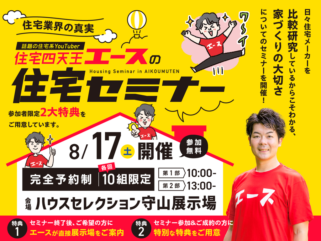 | タイトル | ハウスセレクション守山展示場 住宅四天王エースの住宅セミナー 来場予約 |
