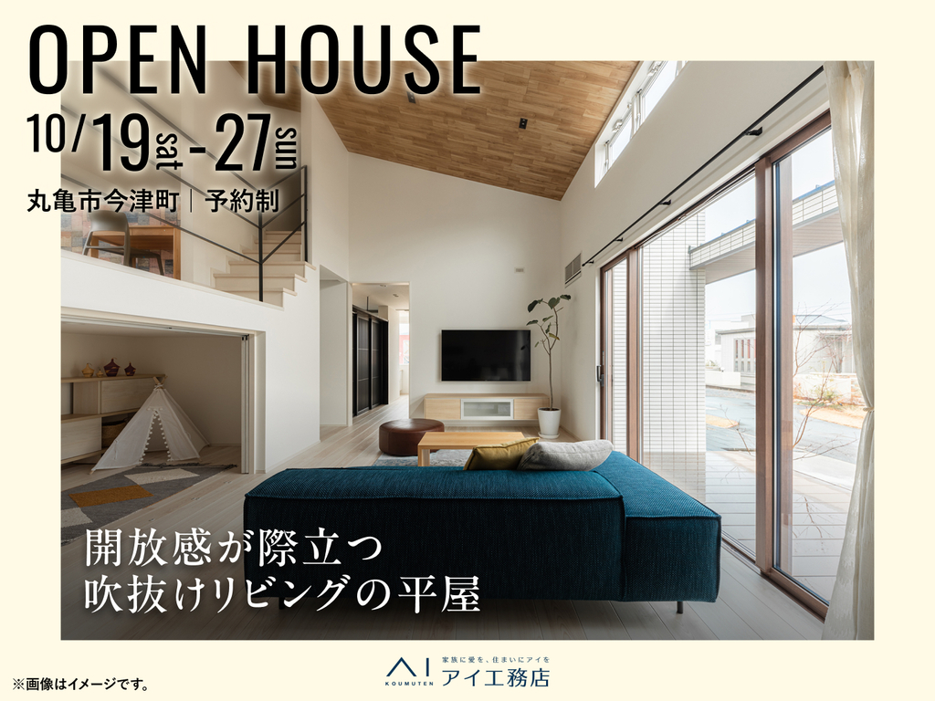 | タイトル | 丸亀展示場 《丸亀市今津町》開放感が際立つ吹抜けリビングの平屋 完成見学会 |