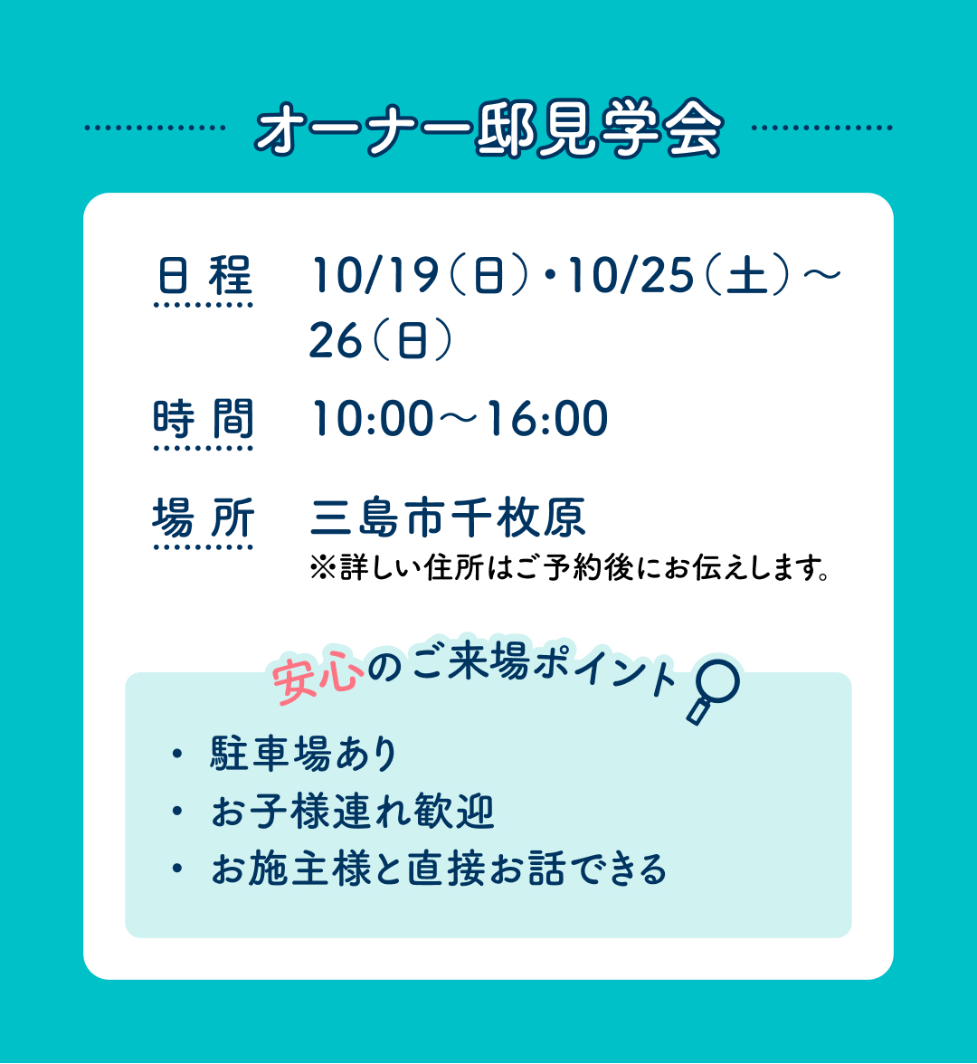 | タイトル | 三島展示場 開放感あふれる吹抜けの家 オーナー様邸見学会 |