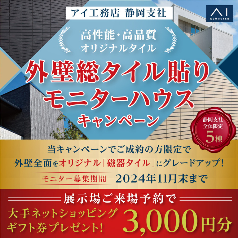 | タイトル | 静岡展示場 外壁総タイル貼りモニターハウスキャンペーン |
