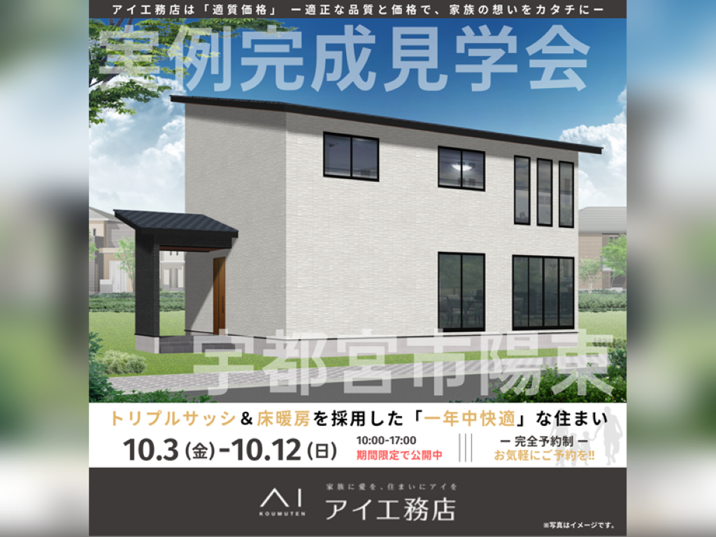 栃木県宇都宮市陽東にアイ工務店の新築注文住宅【トリプルサッシ&床暖房を採用した「一年中快適」な住まい】が完成しました。