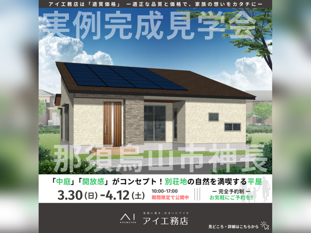 | タイトル | 宇都宮ベルモール展示場 那須烏山市神長 完成見学会 |