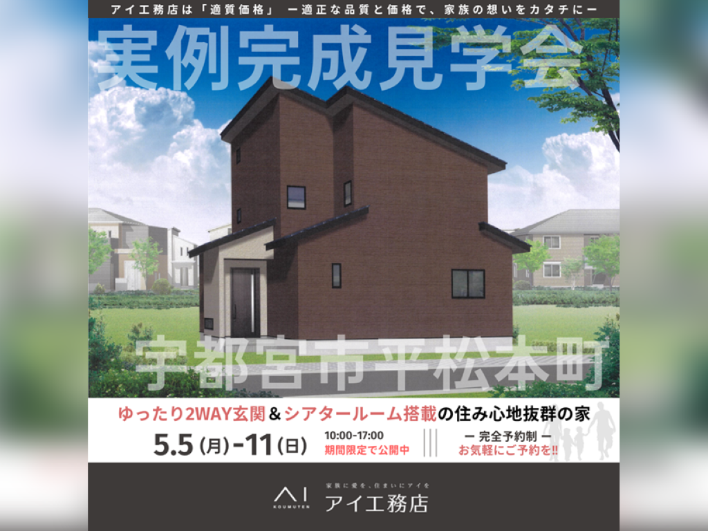 栃木県宇都宮市平松本町にアイ工務店の新築注文住宅【ゆったり2WAY玄関&シアタールーム搭載の住み心地抜群の家】が完成しました。