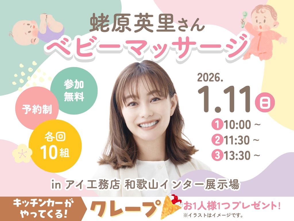 | タイトル | 和歌山インター展示場 【満員御礼✨】蛯原英里さん ベビーマッサージ |