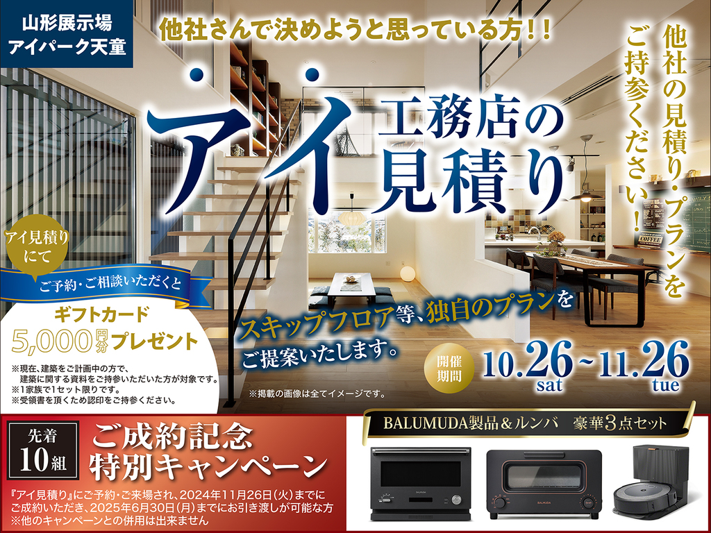 山形展示場&アイパーク天童限定キャンペーンとして、