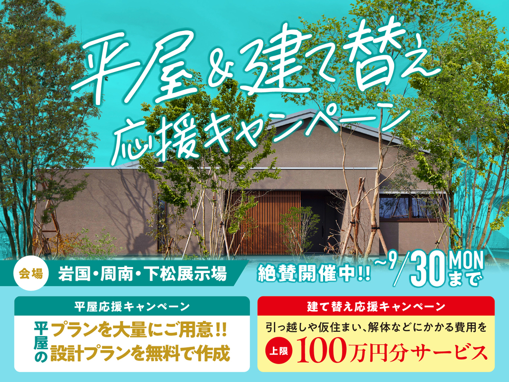 | タイトル | 周南展示場 平屋&建て替え応援キャンペーン |